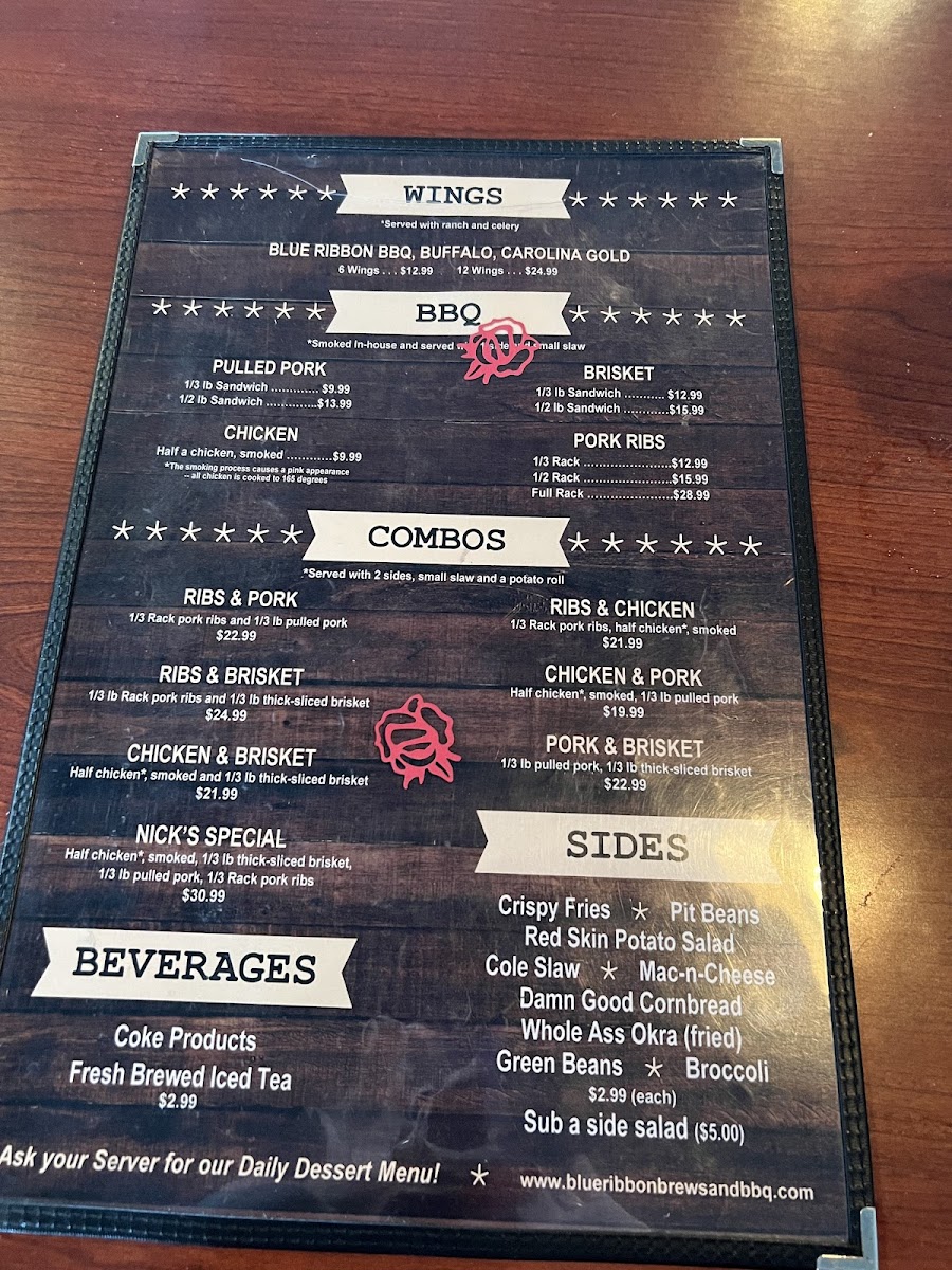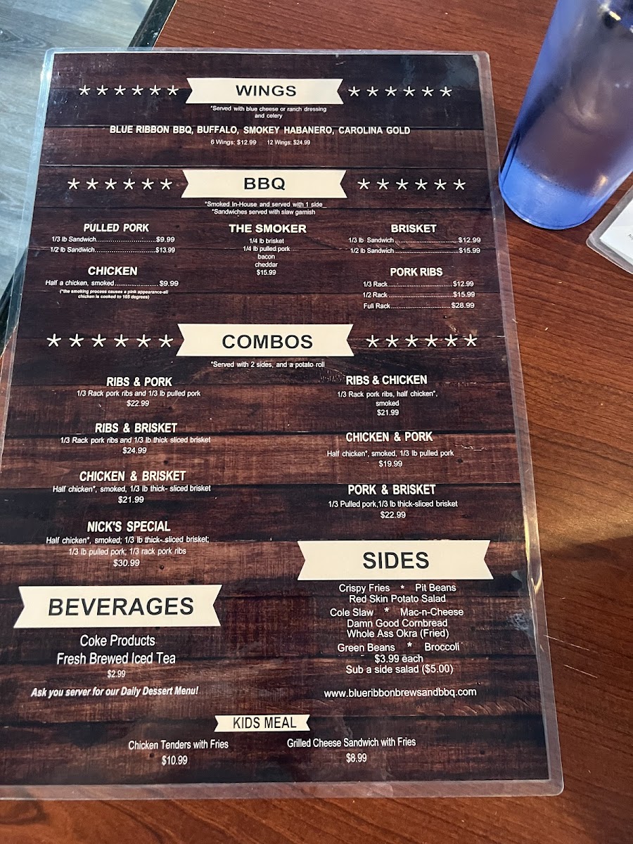 With friendly service and satisfying portions, Blue Ribbon Brews & BBQ promises an unforgettable dining experience. Come hungry and leave happy!