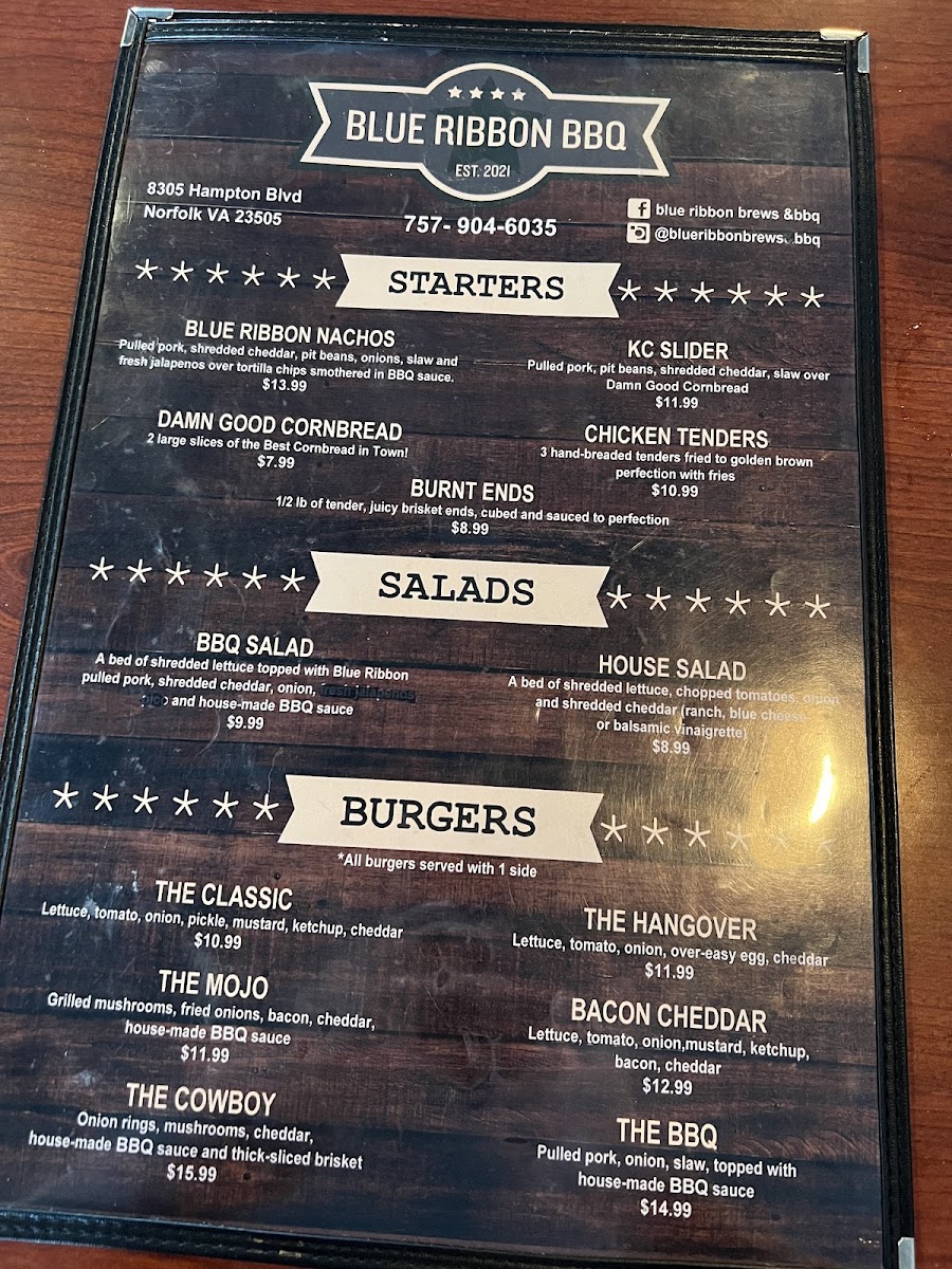 Welcome to Blue Ribbon Brews & BBQ, a culinary gem located at 8305 Hampton Blvd, Norfolk, VA. This vibrant eatery is a must-visit for BBQ aficionados, showcasing a mouthwatering menu that combines traditional Southern flavors with a contemporary twist.
